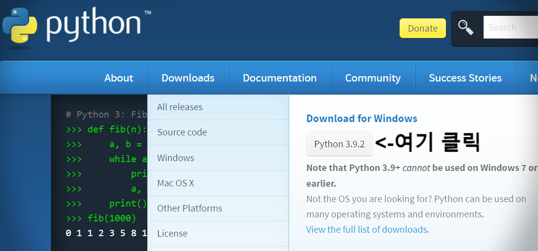 저는 파이썬(python) 3.9.2 버전으로 다운로드 받았어요.