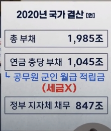 그래서 서류상 부채로 잡히지만, 대부분은 공무원과 군인들 월급에서 따로 적립한 돈으로 줍니다.