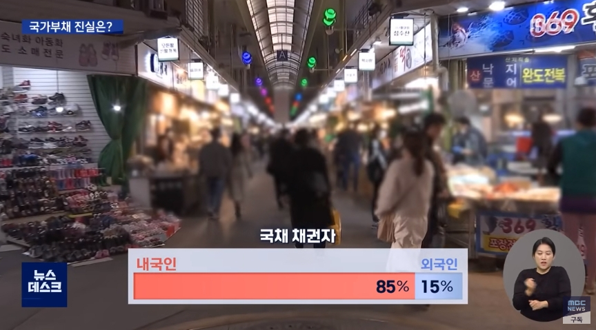 국채의 85%는 우리나라 사람들이 사갑니다.