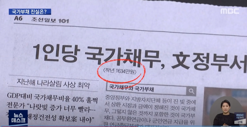 신문들은 또 '국민 1인당 나랏빚이 1,600만원'이라고 보도했습니다.