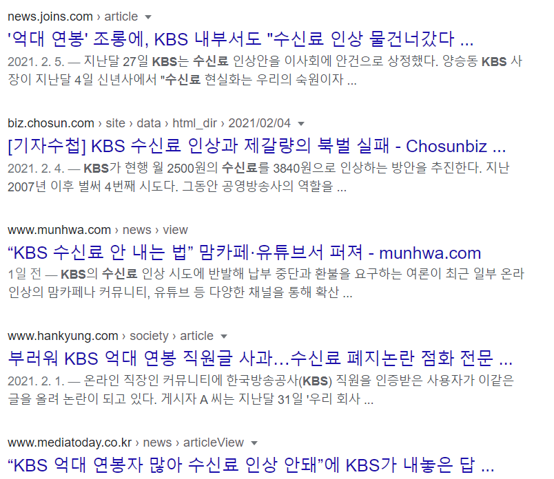 지금 구글에서 kbs수신료라고만 검색해도 아래와 같이 나온다...ㅠㅠ