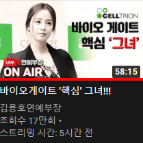 딱봐도 누를수 밖에 없는 영상이지요. 셀트리온 바이오 게이트의 핵심 '그녀'라고 되어있는데, 썸네일에 김태희 사진이 있다니요? 엥... 뭔가 잘못 된것 같지만, 내가 잘못 본건아니고, 일단 눌러서 영상을 열심히 시청했습니다.
