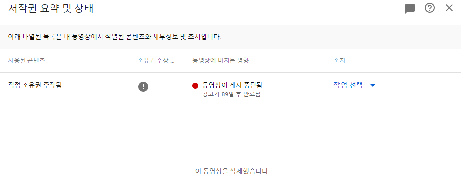 @취할 수 있는 조치 / 유튜브 스튜디오